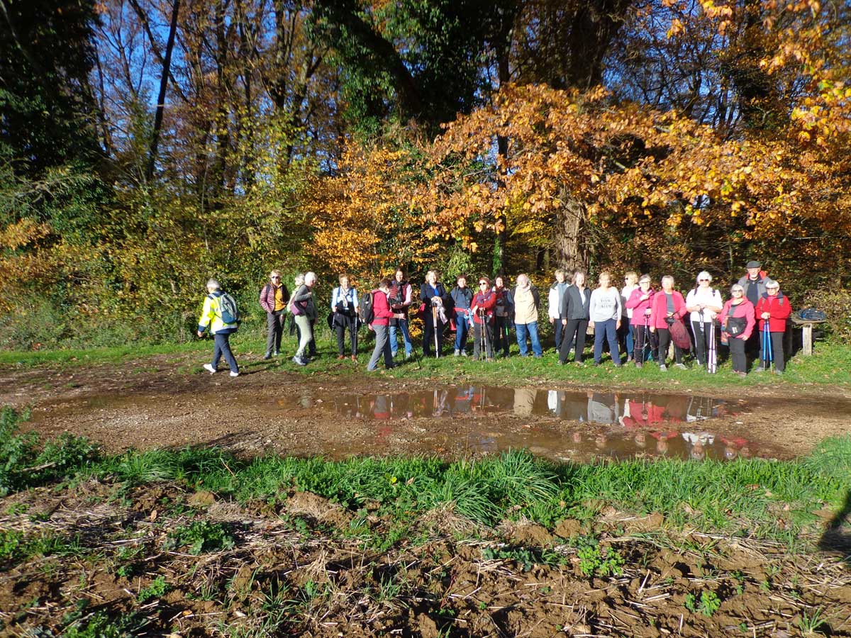 Trente huit participants ont pris la route pour rejoindre le centre Athenas, puis continué par le sous bois pour apercevoir les versants de vignes dans leur couleur automnale.