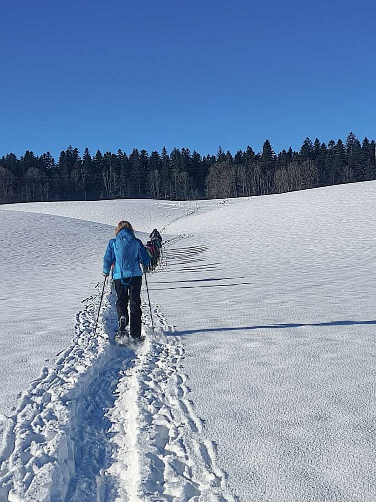 Adieu le brouillard lédonien. Nous avons profité d'une belle journée ensoleillée pour cette sortie raquettes.