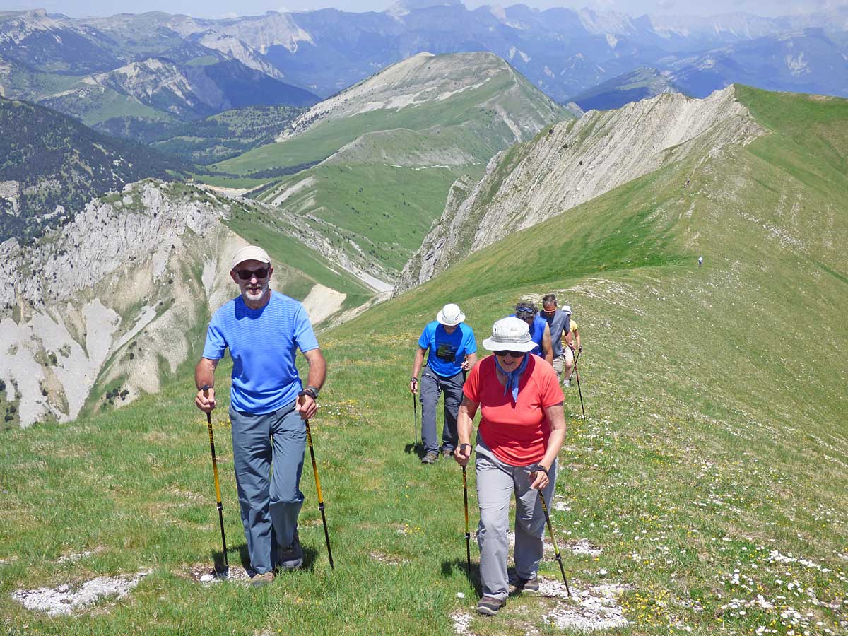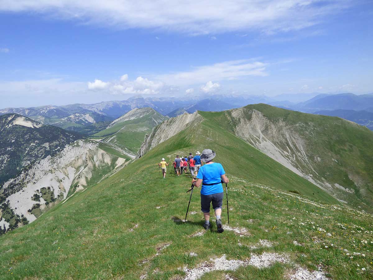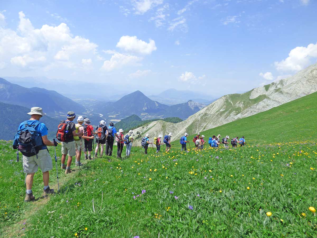 Du 12 au 17 juin 2017, 21 randonneurs de la Retraite Sportive Lédonienne ont été accueillis dans un gîte écologique afin de parcourir des sentiers entre 1200 et 2050 m d’altitude à la nature préservée, où l’on peut encore voir des bouquetins et des marmottes ainsi qu’une flore exceptionnelle, offrant des vues magnifiques sur la barrière du Vercors avec le Mont Aiguille et le Grand Veymont, et le massif de l’Oisans avec l’Obiou et le Grand Ferrand.