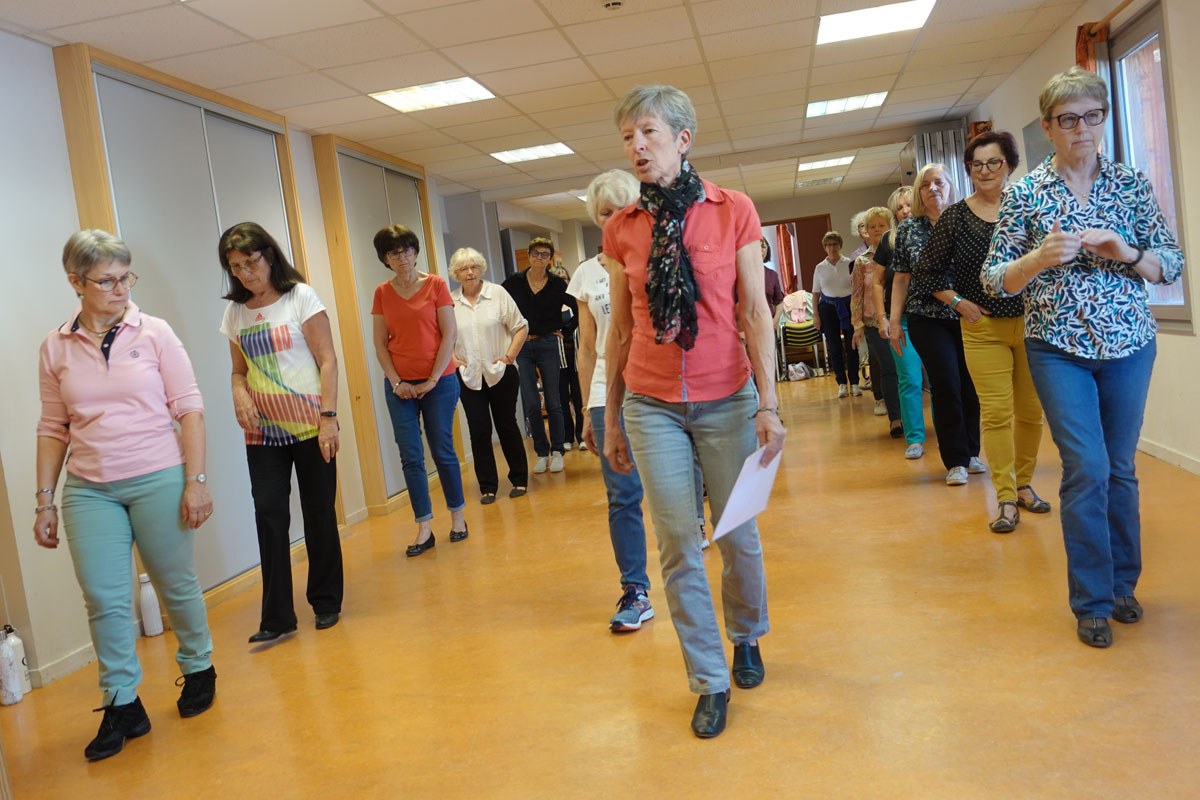 Lundi de 14 h à 15 h 30 : danse en ligne débutant assurée par Anne-Marie