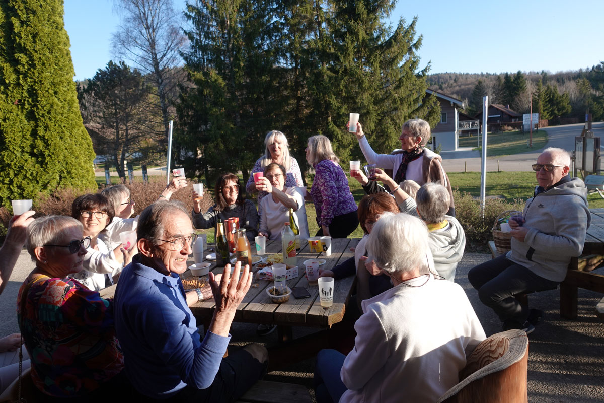 Les 5 et 6 avril,une trentaine d'adhérents des 5 groupes de danse de la RSL ont participé à un week-end à Cerniébaud. Après un repas pris au Chalet de la Joux qui nous a accueillis ces deux jours, nous avons dansé tout l'après-midi. En fin de journée, certains ont fait un petit tour à la piscine, jacuzzi, sauna et hammam ; d'autres ont profité du soleil.