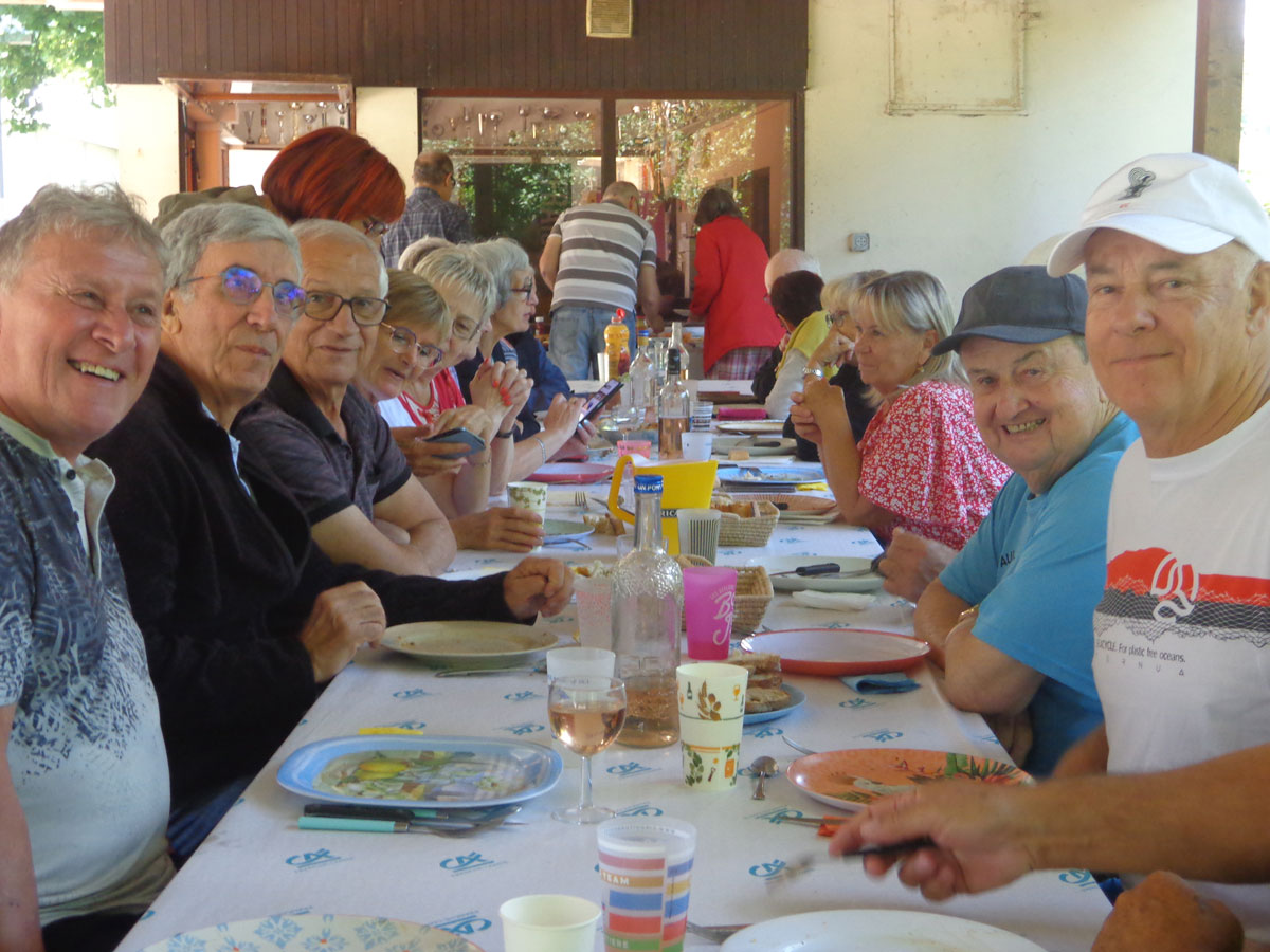 Ce mercredi 9 juillet, c’est par un temps idéal, ni trop chaud, ni trop froid que les joueurs de lyonnaise se rassemblaient à Conliège pour le repas de fin de saison.