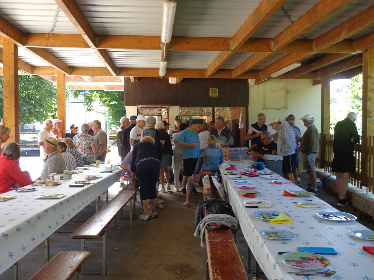 Chacun s’affairait à mettre tables et bancs pour accueillir 40 convives avant le tirage au sort pour le début de nos parties.