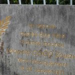 Après avoir contourné l'enceinte du château , nous sommes passés devant le rucher un peu spécial et le champ de cyclamens pour arriver à la tour du Zouave Coco. Quelques photographies plus tard, nous avons repris la route pour descendre dans les vignes et revenir à Montigny lès Arsures pour nous recueillir sur la tombe de Léopold Coco.