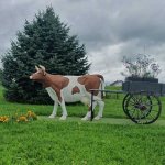 Nous avons longé des enclos où des vaches, brunes, blanches, rousses, nous ont scruté avec curiosité, des chevaux de toute beauté demeurés totalement indifférents à nous, intrus dans leur environnement.