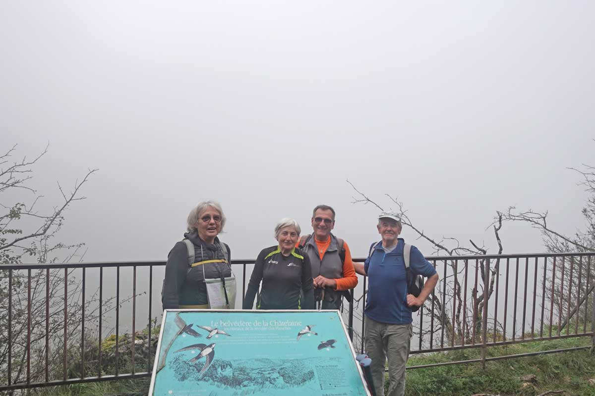 Le brouillard et l'absence de soleil ne nous ont pas incités à la flânerie. La randonnée de 13 km 200 avec 400 mètres de dénivelé a donc été exécutée en 4 h 30 (pause comprise).
